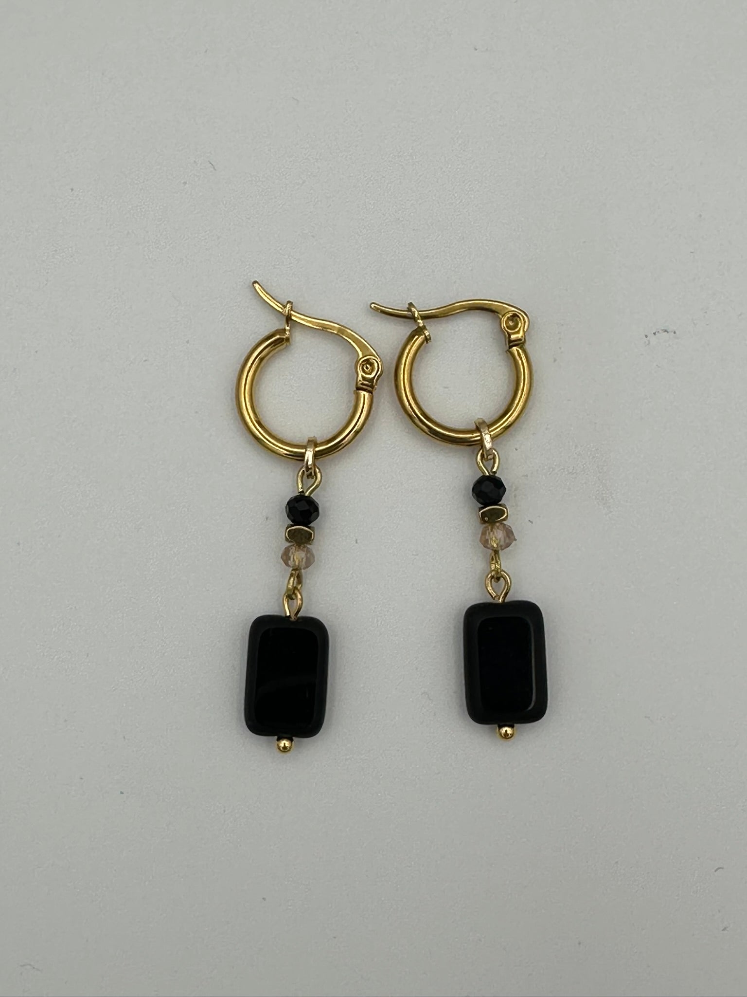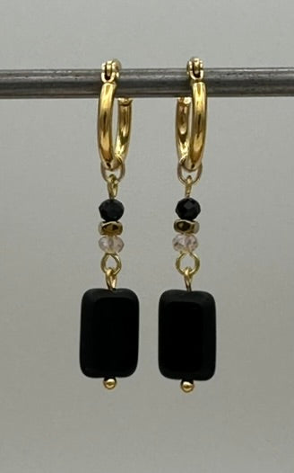 Creolen met hanger van mooi geslepen zwarte glaskraal